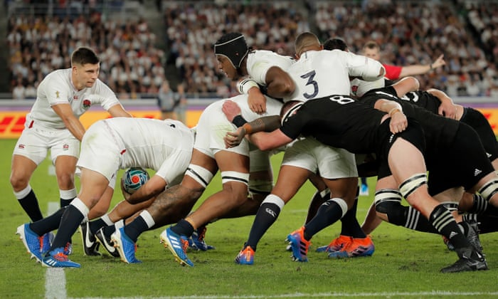 Nový Zéland trvalo 20 minút, kým znovuobjavilo svoj plán, ale Anglicko bolo o krok vpred a časom sa All Blacks ustálili, už presunuli dôraz na svoju obranu. Facebook Twitter Pinterest Anglicko ide vpred po vyrovnaní, ktoré vyhral Maro Itoje (v strede). Fotografia: Tom Jenkins / The Guardian
